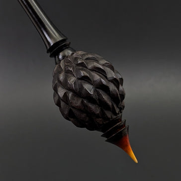 Dragon egg bead spindle in African blackwood and hand dyed curly maple