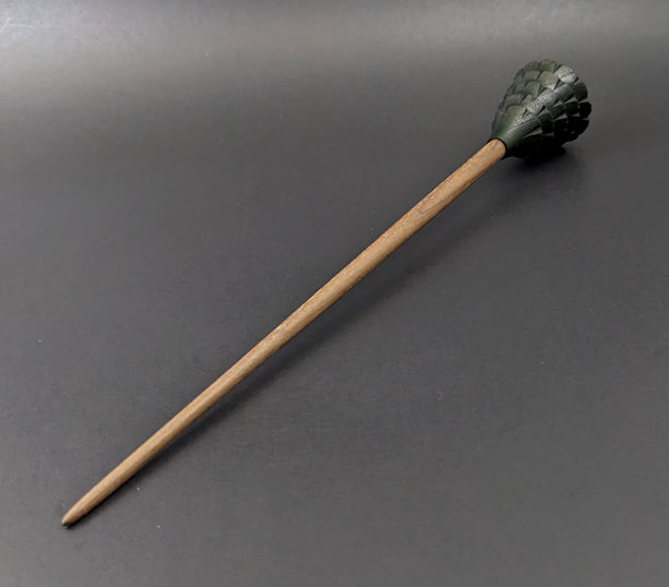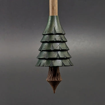 Pine tree spindle in hand dyed walnut and walnut