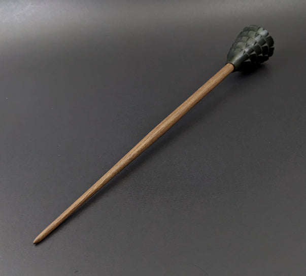 Pine tree spindle in hand dyed walnut and walnut