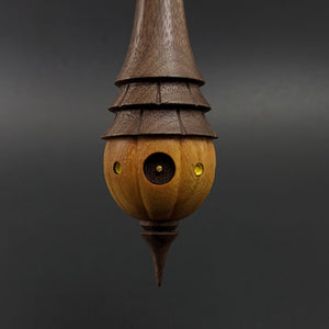 Mushroom support spindle in hand dyed maple burl, holly, and walnut